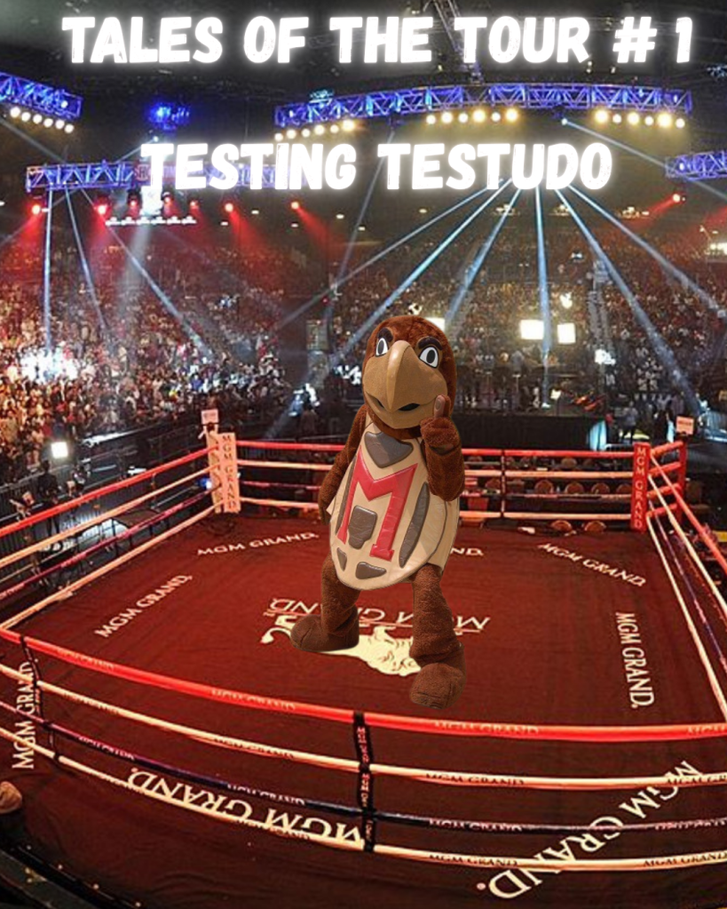 “Today, one opposing fan will FIGHT TESTUDO UNTIL KNOCKOUT!” The voice said.